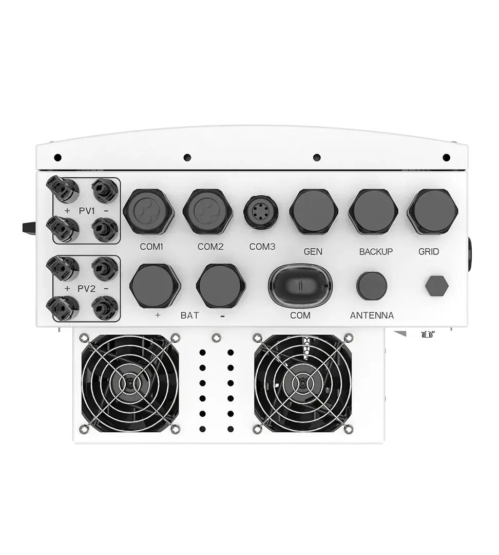 Un port dédié permet de connecter un groupe électrogène pour étendre l’autonomie en cas de coupure prolongée. L’onduleur gère automatiquement le démarrage/arrêt du générateur selon le niveau de batterie.